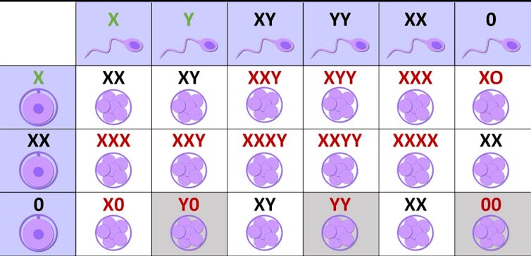 Para acabar con los matices, ¿qué pasa si el embrión lleva solo uno o más cromosomas Y y no lleva ningún X? Nada, porque esta condición es incompatible con la supervivencia, ya que el cromosoma X contiene más de 1 000 genes necesarios para el desarrollo.